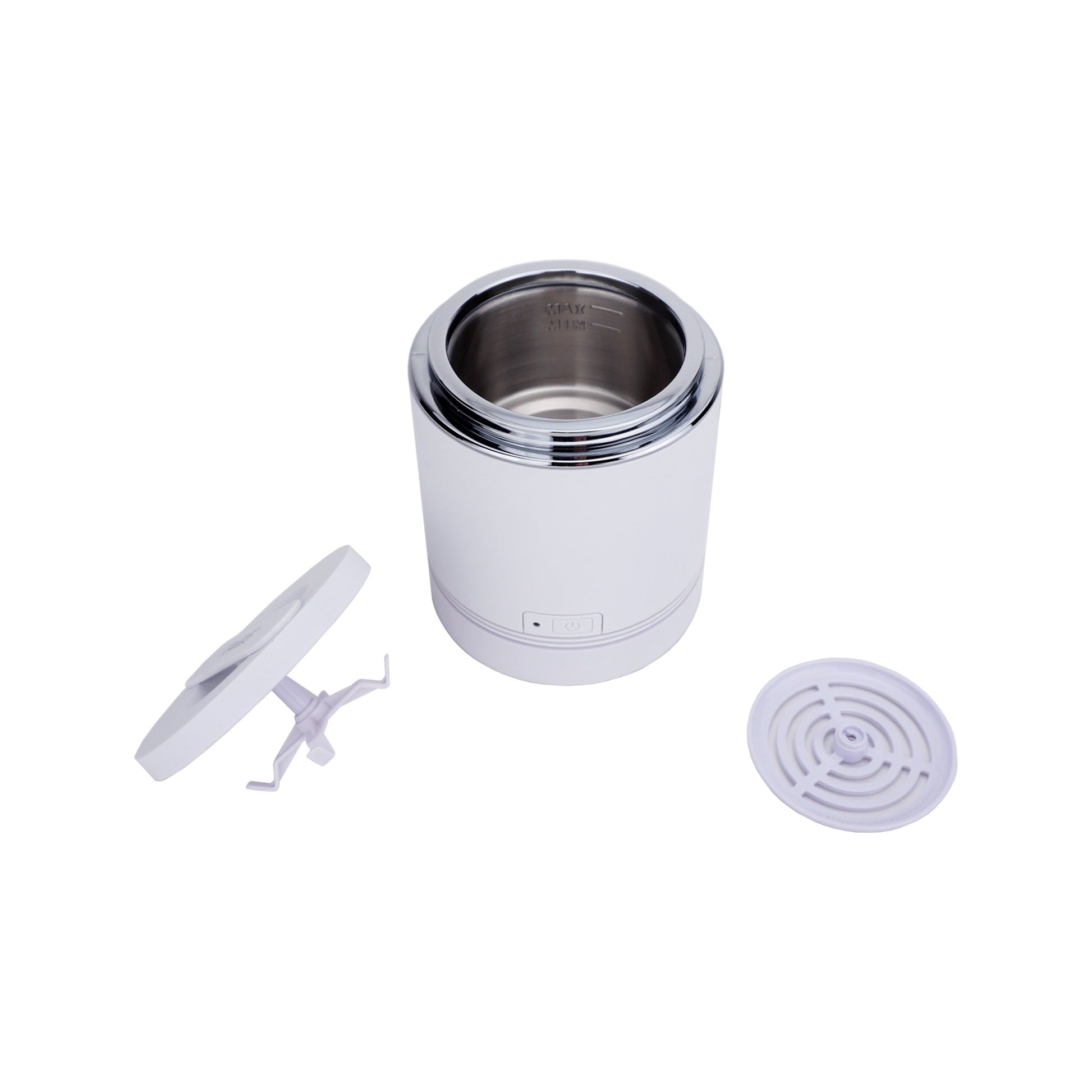 The iSonic® D1800 delivers powerful ultrasonic cleaning in a sleek, space-saving form. Ideal for everyday use at home, this compact cleaner uses 42,000 Hz of ultrasonic frequency to gently and effectively remove dirt, oil, and buildup from rings, earrings, watches, and more — all with quiet operation and simple touch controls. Available in Pearl White, Black & Rose Gold, and White with Blue Trim to match your personal style.