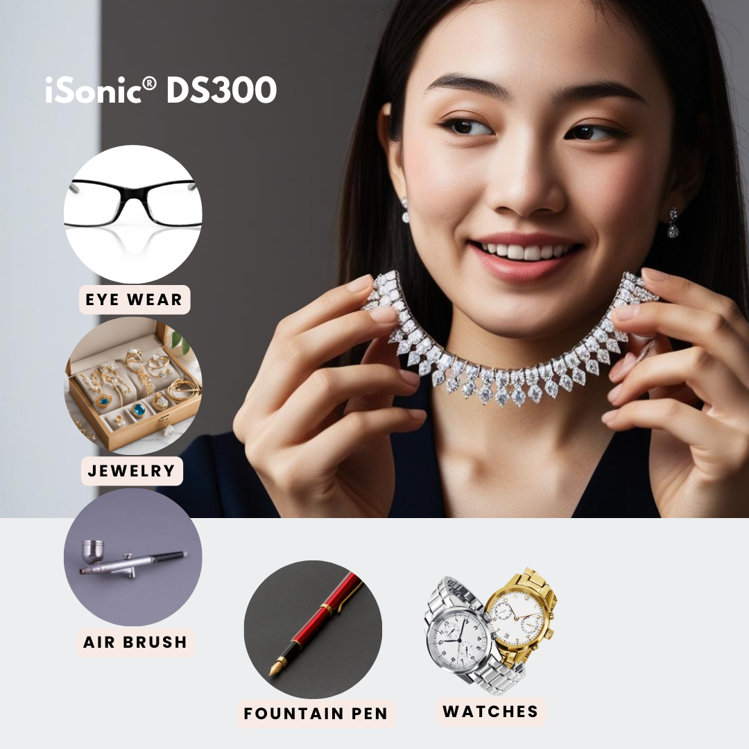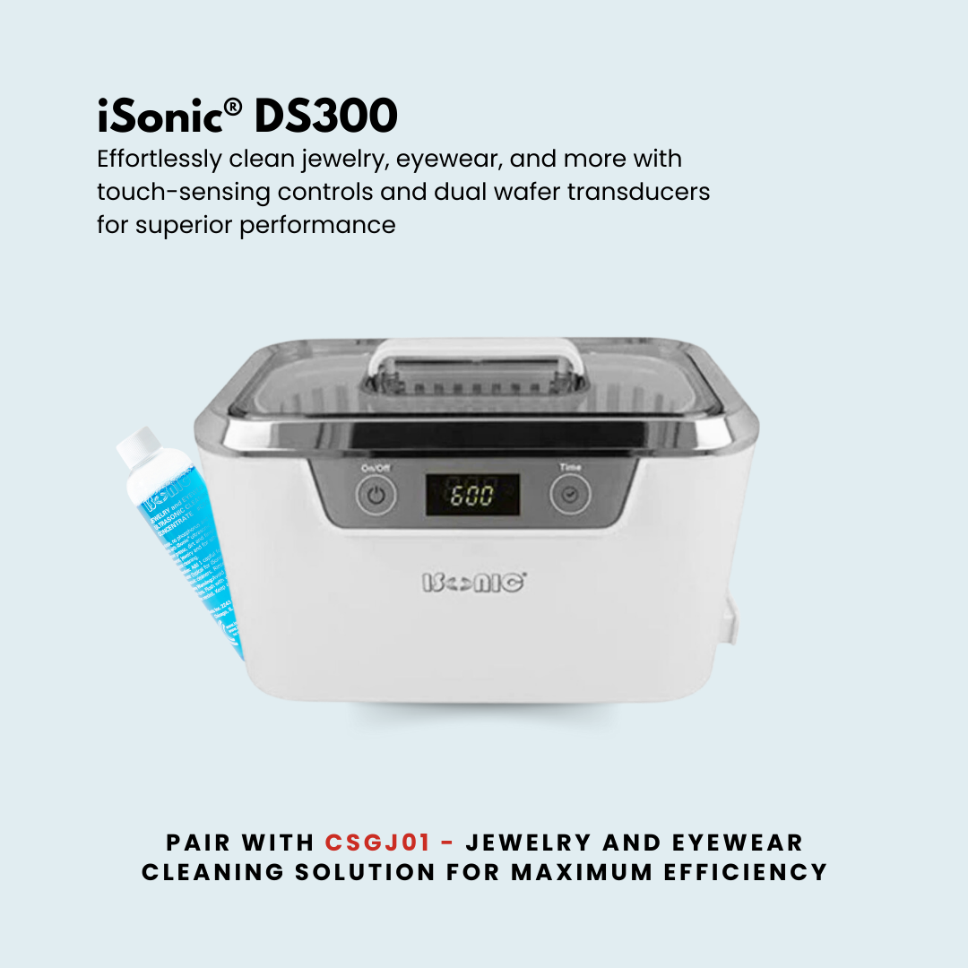The iSonic® DS300 offers a professional-grade solution for cleaning jewelry, eyeglasses, watches, and other small items. Featuring dual wafer transducers and touch-sensing controls, this ultrasonic cleaner ensures efficient and thorough cleaning.