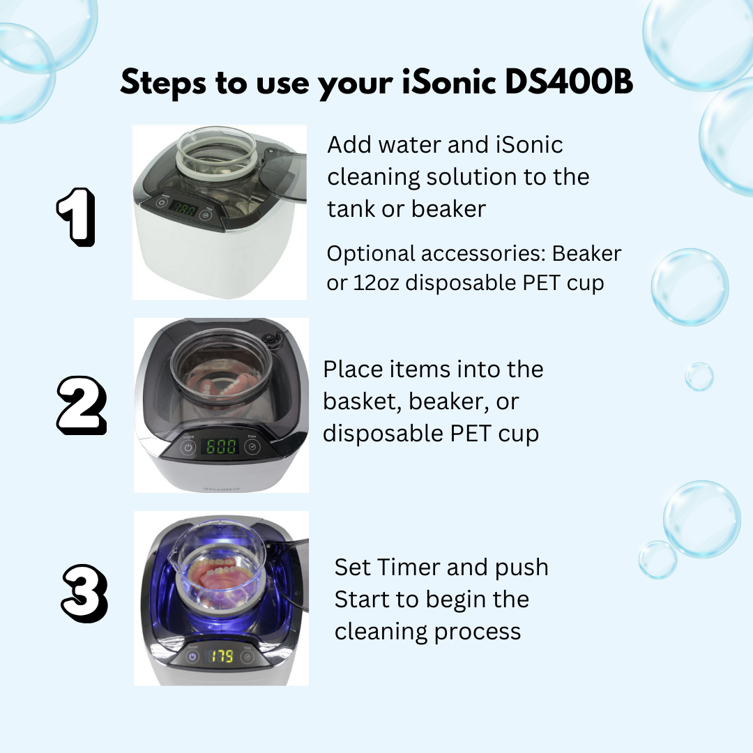 DS400B | iSonic® Miniaturized Commercial Ultrasonic Cleaner for Jewelry, Cosmetic Tools, Eyeglasses