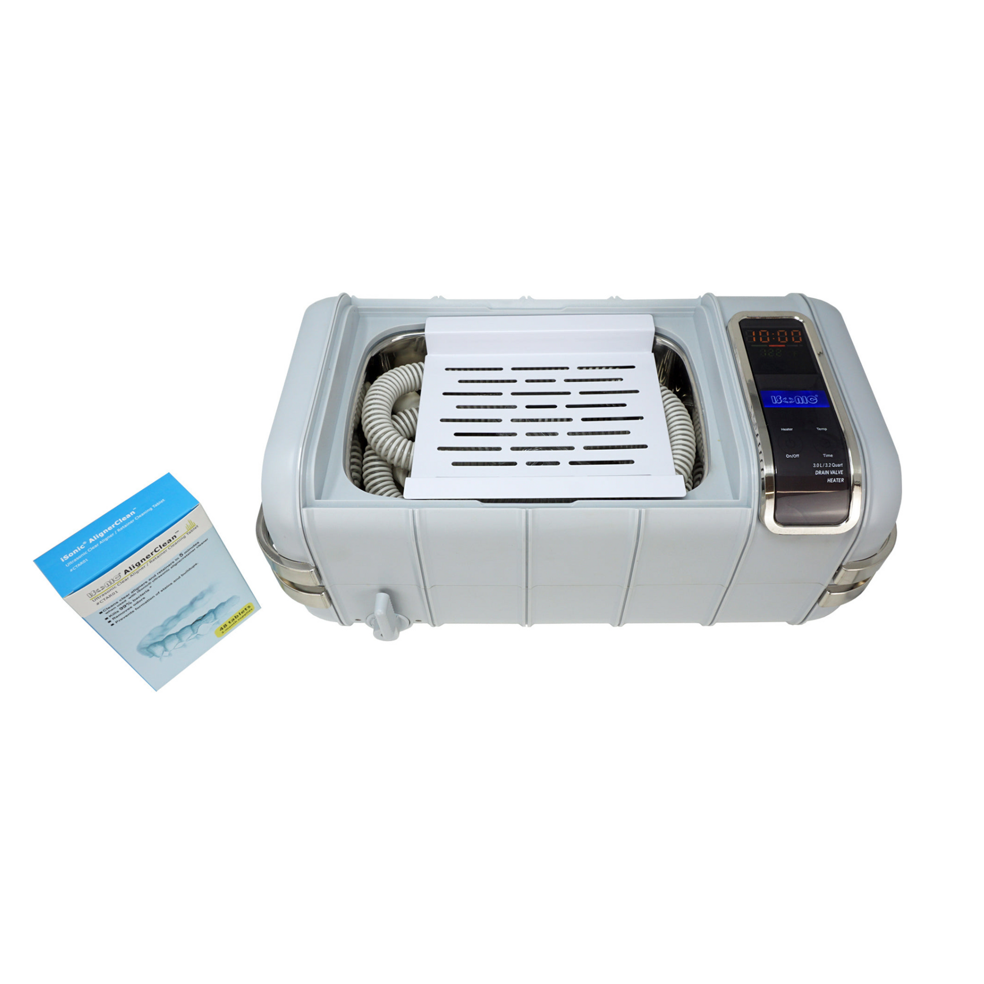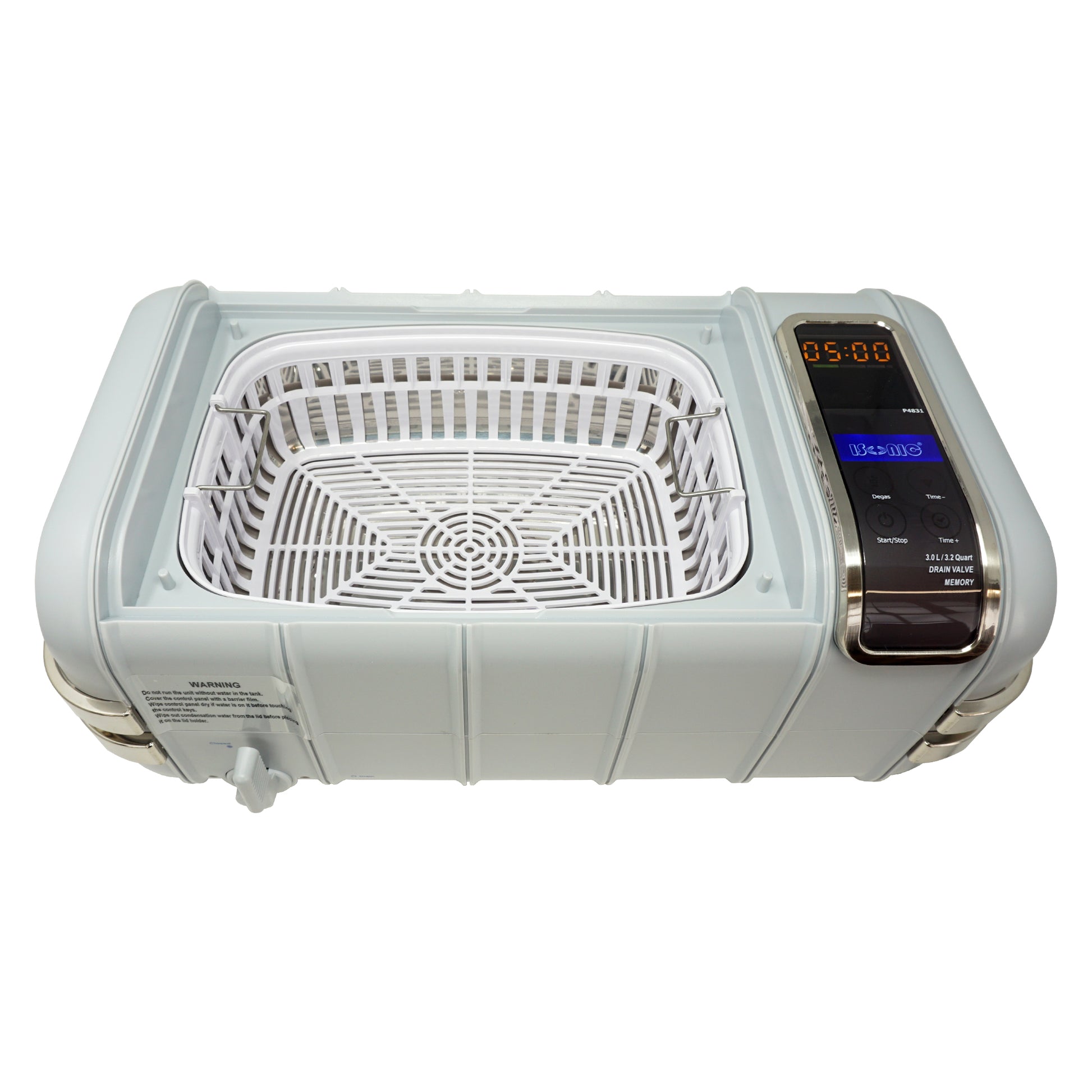 P4831-CPAP (medium) | iSonic® Ultrasonic CPAP/BiPAP Cleaner, 0.8Gal/3L, with a stainless steel weight bracket, a box of cleaning tablet, plastic basket, heater, drain