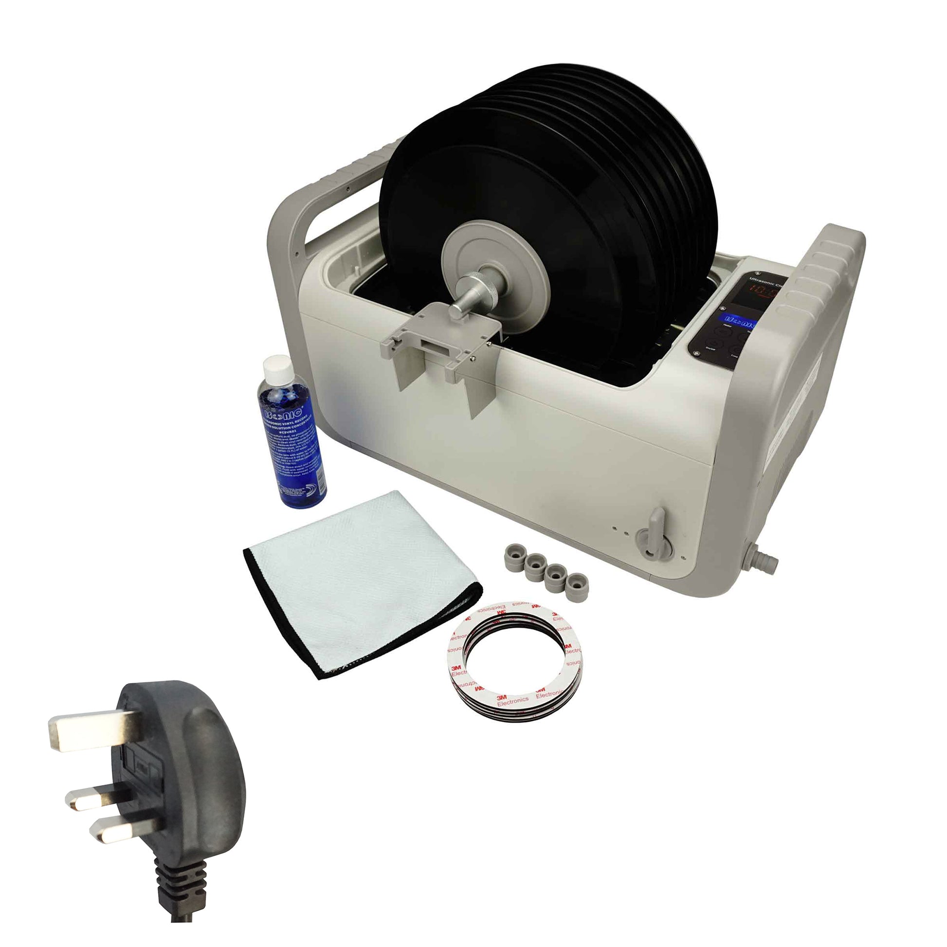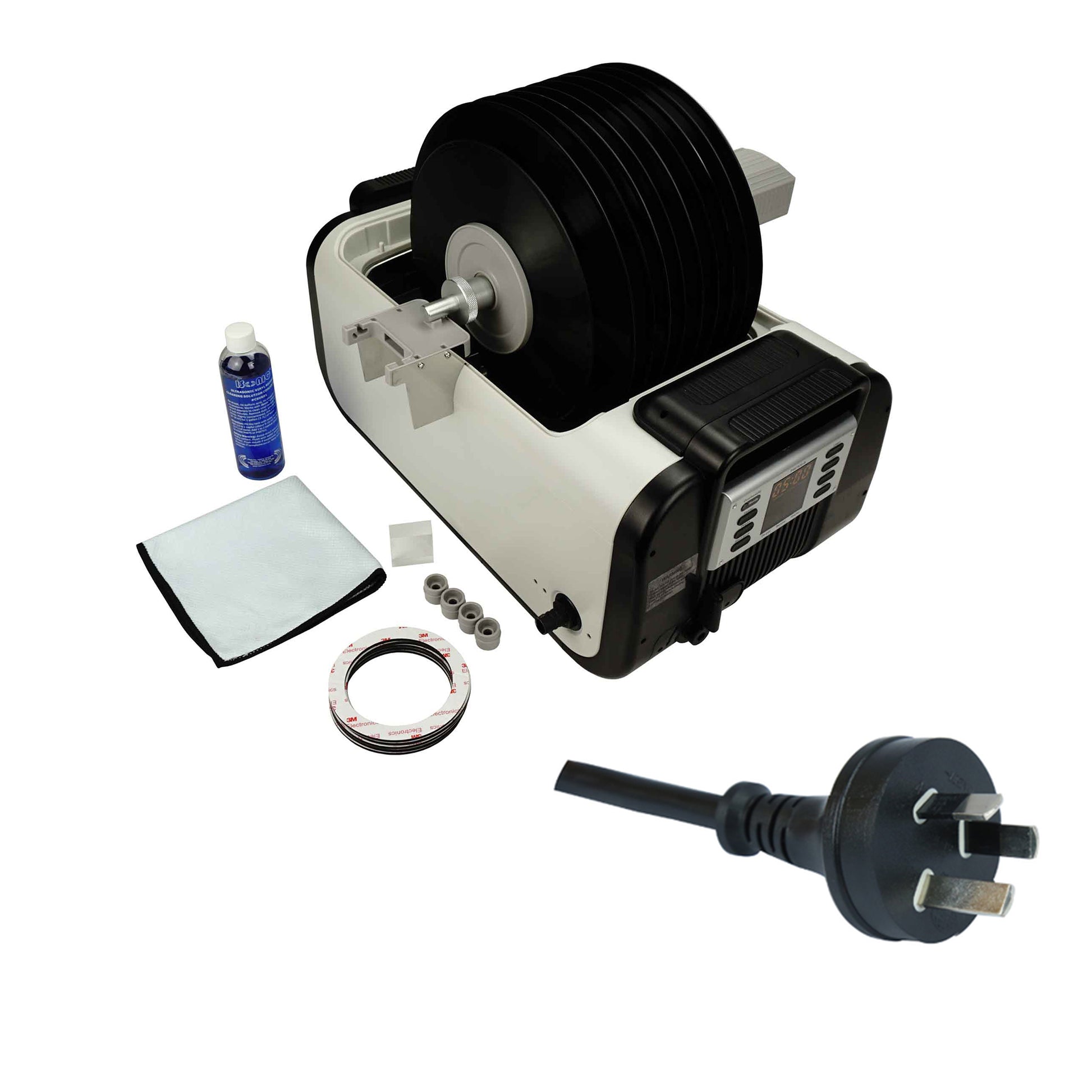 - Cleans 1 to 10 records per cycle with consistent 5 RPM motorized rotation